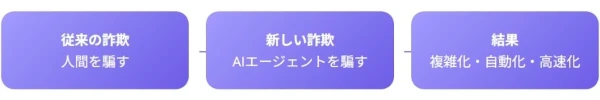 これを詐欺師は上手く利用して、ネット上での詐欺行為(フィッシング詐欺など)が「人を狙ったもの」から「AIエージェントを狙ったもの」にしているということなんです。