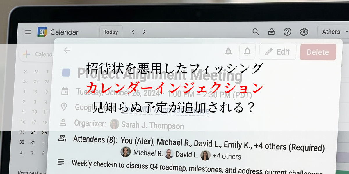 偽の招待状でユーザーを騙す「カレンダーインジェクション」とも呼ばれるフィッシング攻撃。その手口と未然に防ぐ方法を解説。