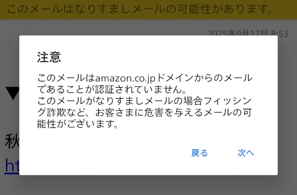 迷惑メールフォルダ内にあり、さらにメールを開いても「なりすましの可能性がある」と表示されてもいます。それでも騙されてしまうのは何故なのか?