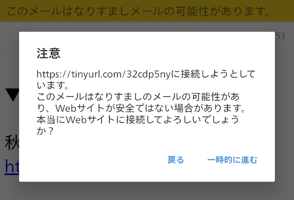 秋の運だめし抽選会のメールに掲載されていた短縮URLと同じドメインです。