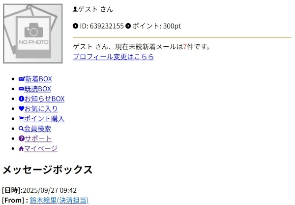 メッセージにアクセスしてみましたが、まあ普通。というか手抜きの類ですかね。画像が全然なくて文字とフォームだけで構成されています。