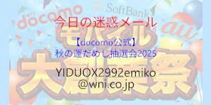 今回の「ドリームジャンボ宝くじ」も「秋の運だめし抽選会」「マルチミリオネアゴールド」と送信元は同じだろうと推測します。