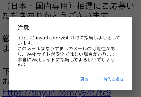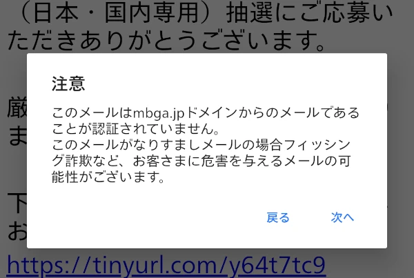 「厳正なる抽選の結果【当選】となりました。」とありますが、応募自体していません。