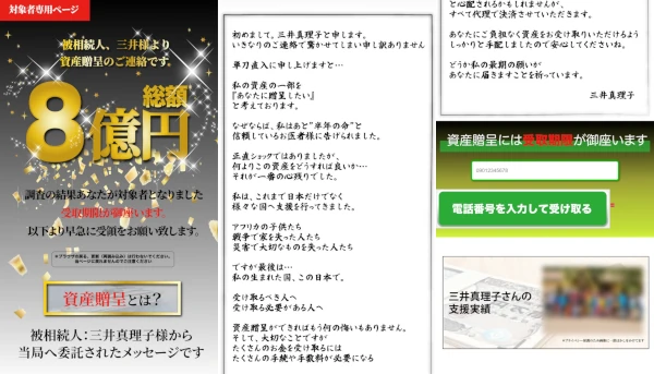 ある日突然、「三井真理子様よりメッセージがございます。早急に資産承継できる相手を探しております。」というメールが届いたら、あなたはどうしますか?