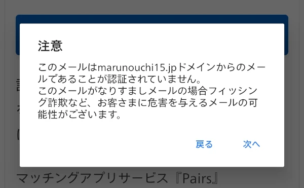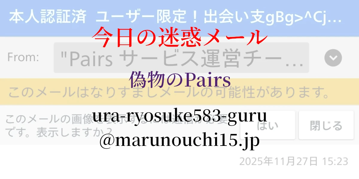 今回は偽のPairsからのフィッシングメールを実際の画像付きで掲載、解説しています。