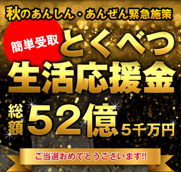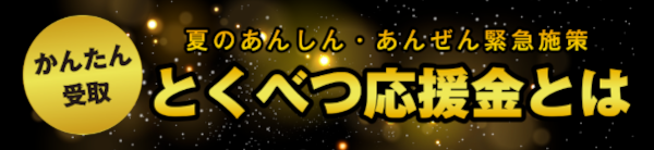 緊急施策『とくべつ応援金』とは、安心・安 全・簡単に受け取ることが出来る支援金となります。