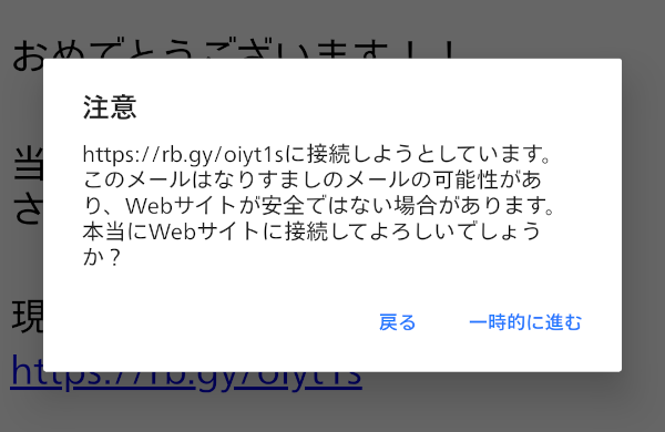 このメールや接続先メッセージには「お金を払え」とは書いてありません。