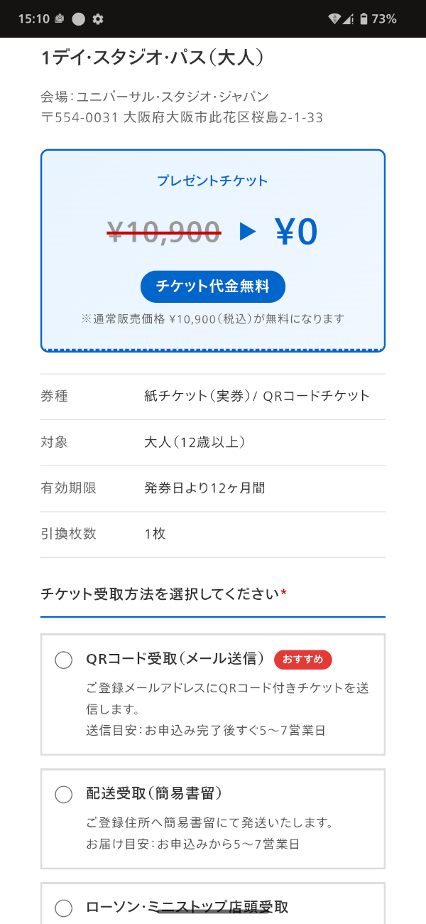 【重要事項】ローチケ ご当選確認と受取手続のお願い|USJの「1デイ・スタジオ・パス」が当選した?
