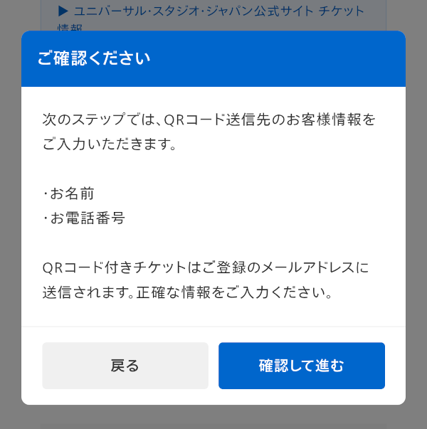 強く進められている「QRコード」を選択しました。すると、こちが表示され、名前と電話番号が必要だとあります。