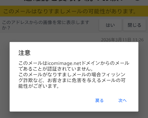 このメールはicomimage.netドメインからのメールであることが認証されていません。