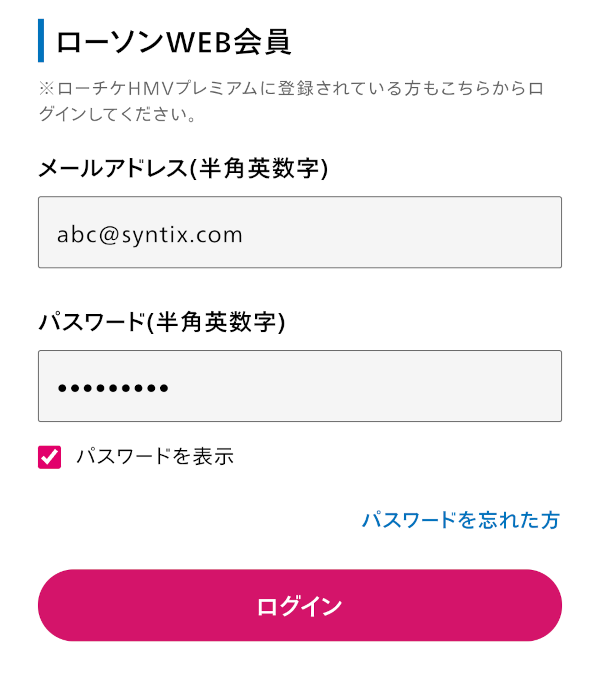 マイページログイン画面に適当なメールアドレスとパスワード入力で、次に進めます。