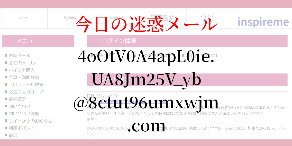 inspireme(インスパイアミー)からの迷惑メールは以前にも掲載しています。