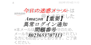Amazon【重要】異常ログイン通知 問題番号8023653707113からの迷惑メール