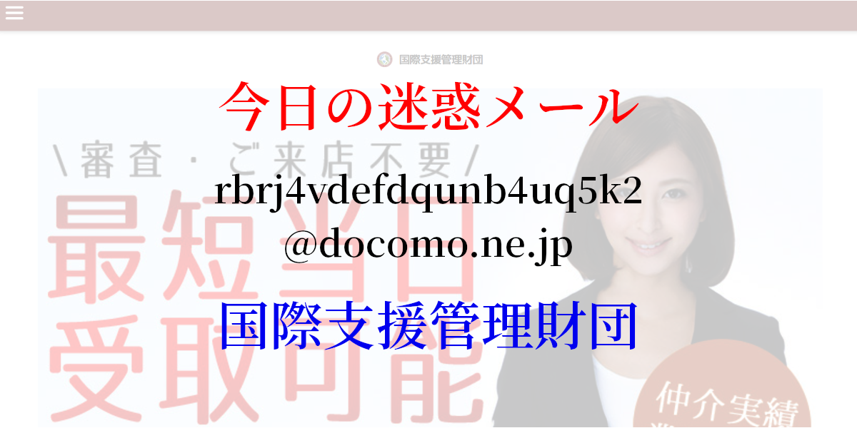 「国際支援管理財団」という、実在しているかのような団体名を名乗りますが、実際には存在しない架空の団体です。