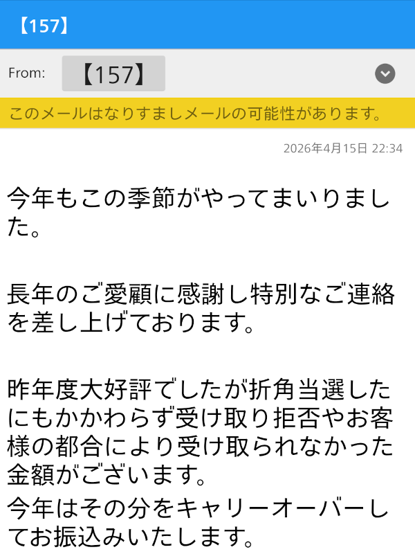 【157】今年もこの季節がやってまいりました。長年のご愛顧に感謝し特別なご連絡を【フィッシング】